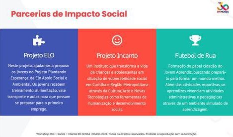 NOSSO COMPROMISSO: Guiamos nossas operações e interações com as comunidades em que atuamos com a dedicação de promover uma diferença positiva. Empregamos práticas de negócios que incentivam a inclusão, a diversidade e o desenvolvimento econômico sustentável. Estamos comprometidos com a capacitação profissional e colaboramos com organizações para enfrentar questões sociais urgentes. Nosso objetivo é construir e manter relações sólidas e positivas, garantindo que nosso impacto seja benéfico e duradouro.