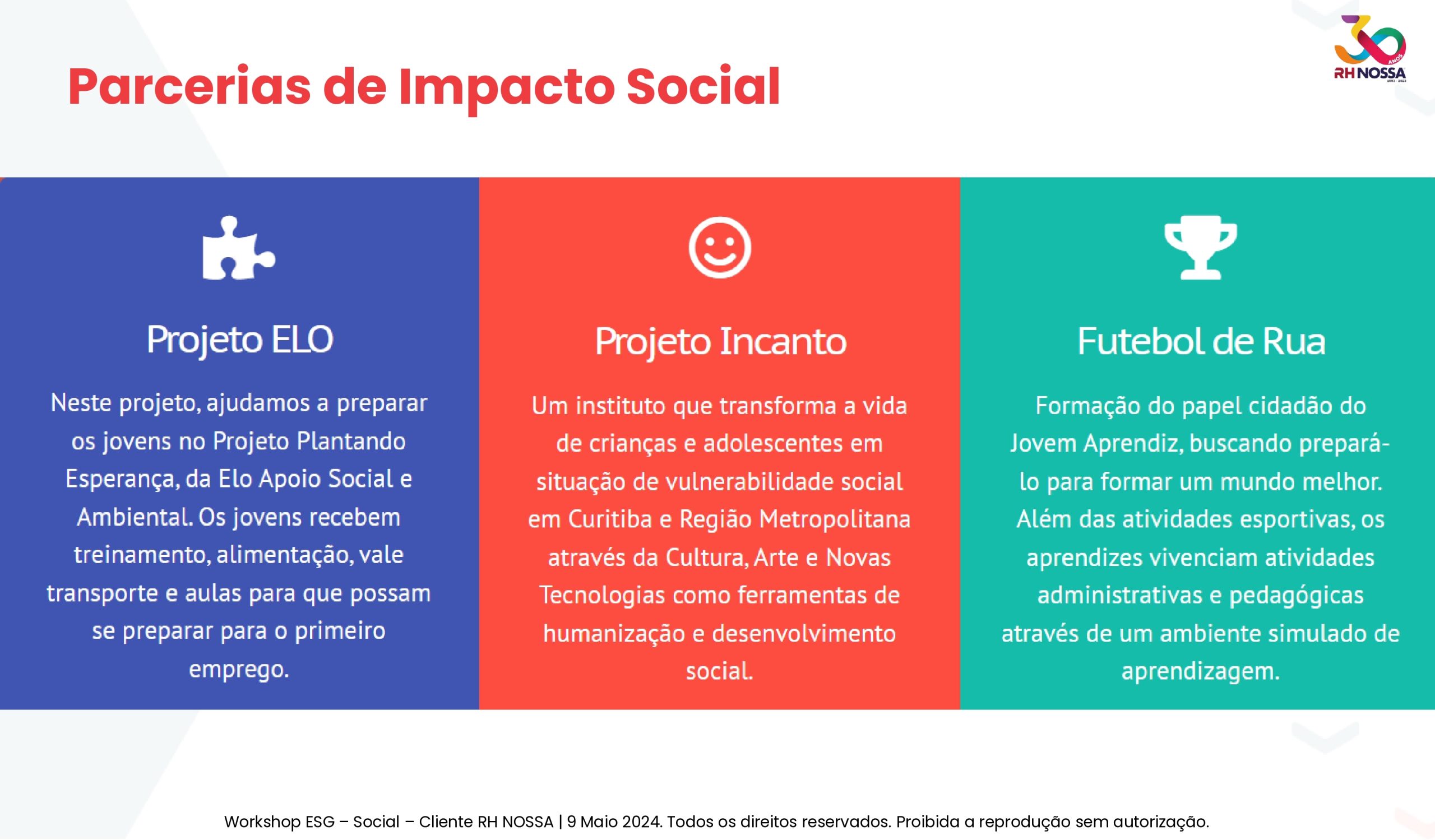 Fundada em 23 de setembro de 1993, em Curitiba, a RH NOSSA surgiu para atender às necessidades específicas de nossos clientes na contratação de pessoas. Desde o início, o comprometimento e a responsabilidade têm sido marcas registradas do nosso trabalho, consolidando-nos como referência na seleção, contratação e gestão de pessoas, sempre com sensibilidade, habilidade e responsabilidade. Na RH NOSSA, nosso objetivo é transformar vidas. Diariamente, criamos oportunidades para que todos possam alcançar seu potencial máximo. Estamos empenhados em promover um futuro sustentável para as próximas gerações. Reconhecemos que um bom emprego é uma ferramenta eficaz para superar a pobreza, e os benefícios se estendem não apenas aos candidatos, mas também às suas famílias, amigos e comunidades.